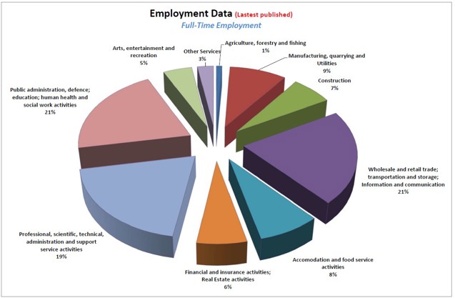 3.1 Total Employment by Economic Sector (2014-2024) Total employment (full- and part-time) increased by 63.8% over the period under review. The percentage change increase under review was in these sectors: Arts, entertainment and recreation, followed by the Professional, scientific, technical, administration and support service activities sector and Construction. .