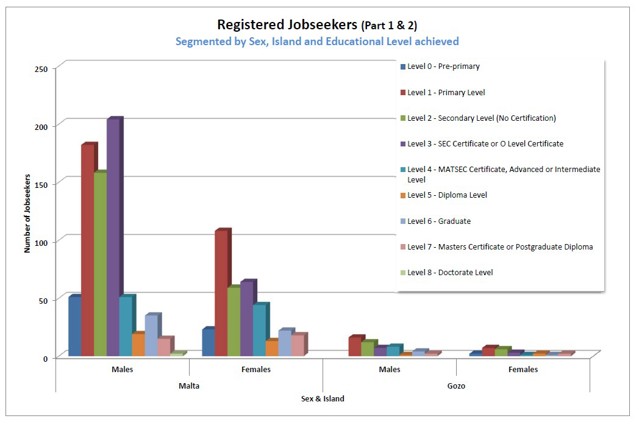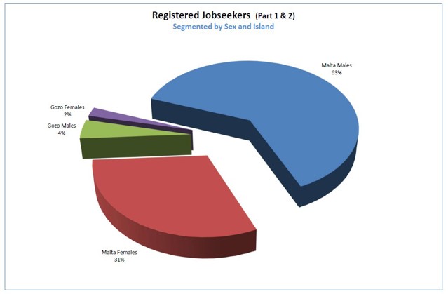 1.7 Registered Jobseekers data as at October 2025The following charts will provide a brief analysis of the registered unemployed pool registered with Jobsplus as at the end of October 2025 (last published information by the National Statistics Office). All information is segmented by Gender and Island for ease of reference. |