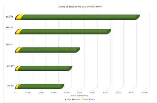 | 1.2 | Count of Employers by Size (2005, 2010, 2015,2020 and 2024) |